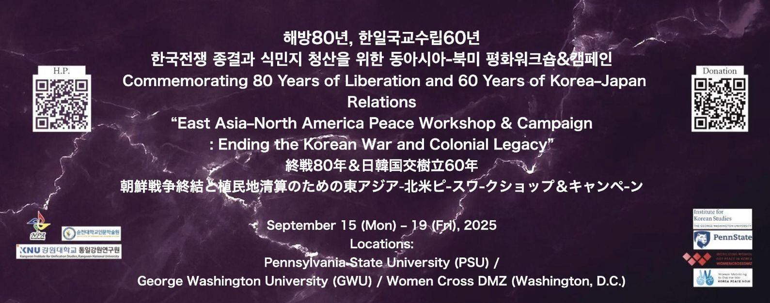 NPAは、コース3「朝鮮戦争と日本」講座の成果を踏まえ、長年にわたり連携してきた日韓の研究者および市民団体とともに、北米の研究者・市民団体の協力を得て、2025年9月15日から19日にかけて、以下の共同ピースワークショップおよびキャンペーンを企画しました。