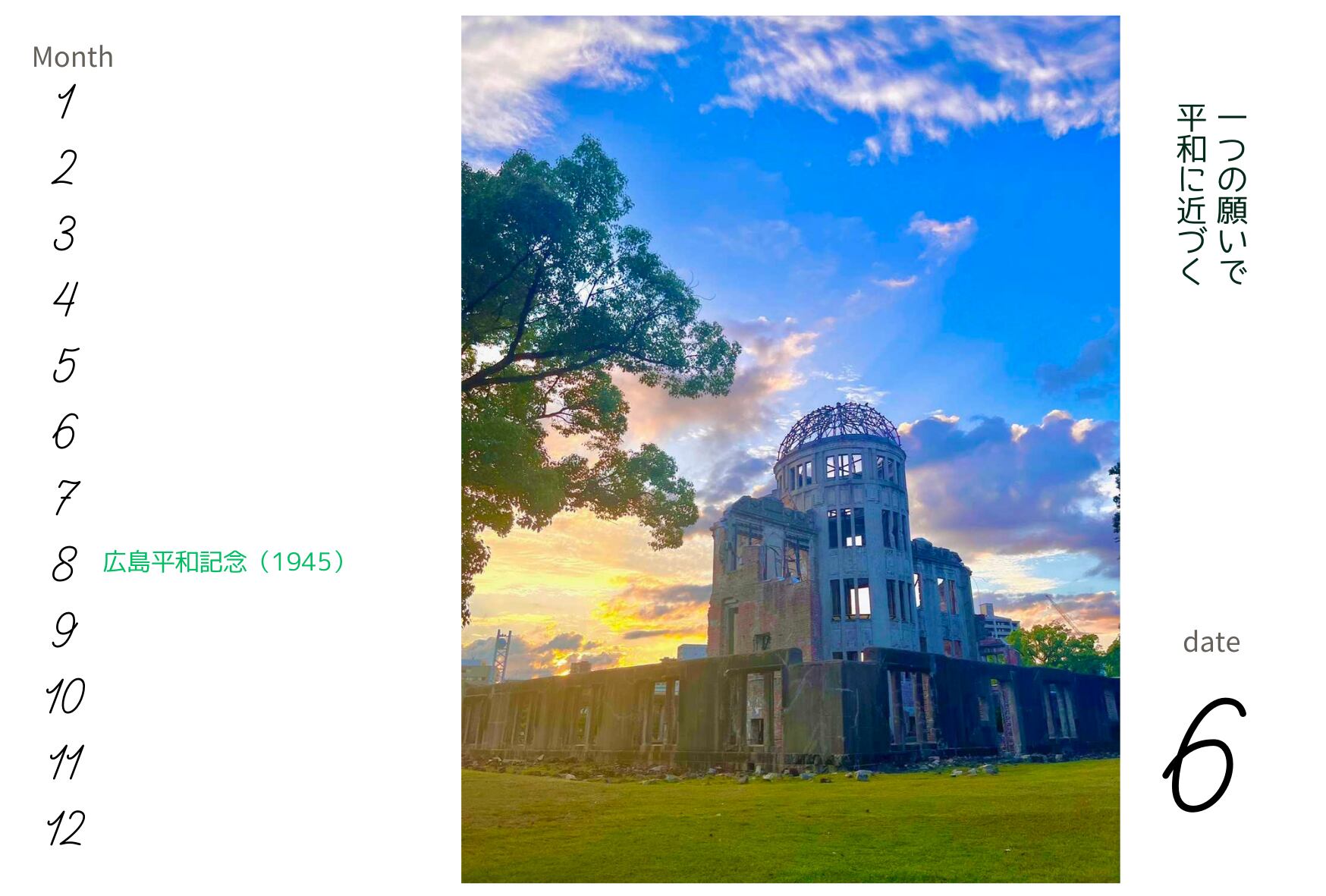 毎日めくるピースカレンダー。その毎日の時間はかけがえのないものです。かけがえのない日々が、平和で人権の満ち足りたもの(世の中)になるように、願いを込めました。