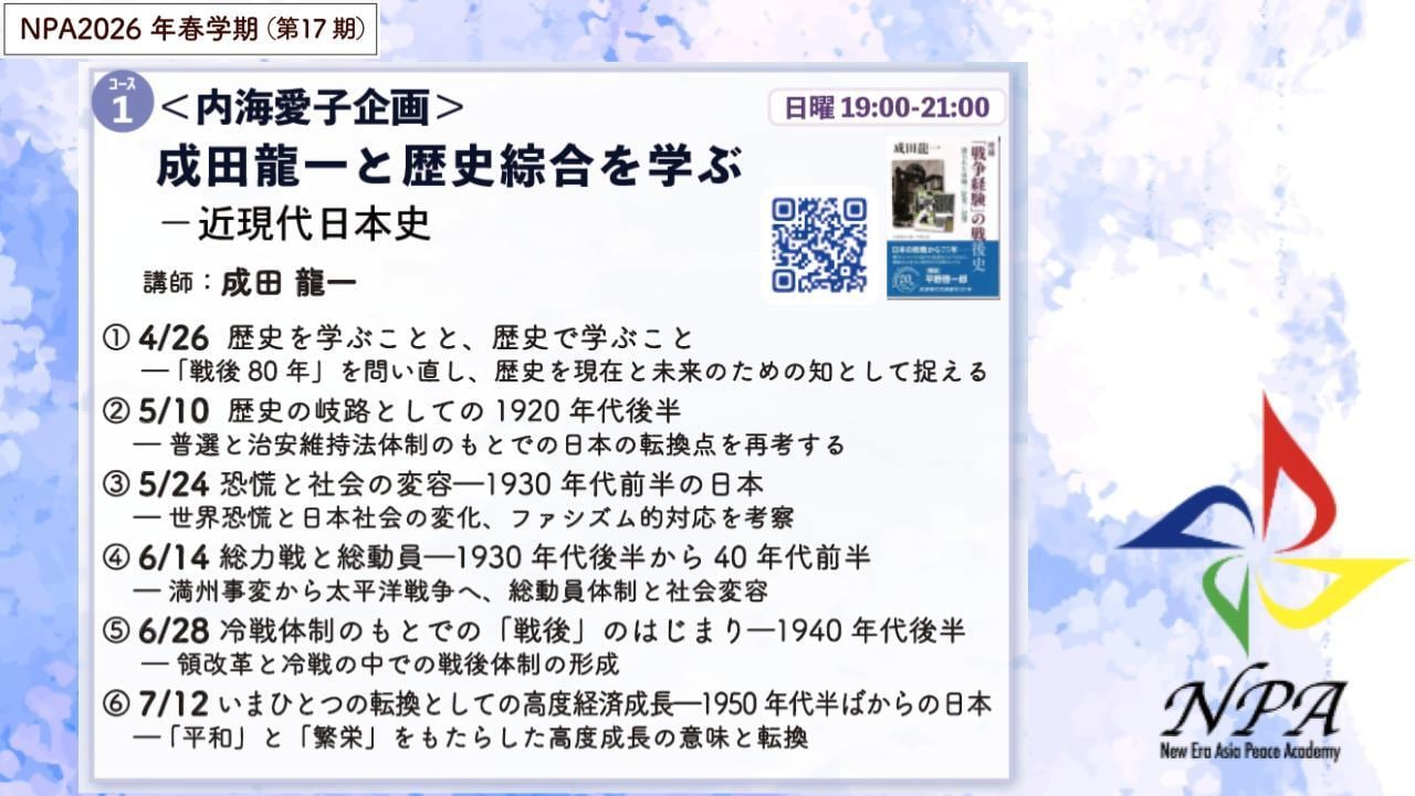 コースタイトル:<内海愛子企画〉成田龍一と歴史総合を学ぶ -近現代日本史